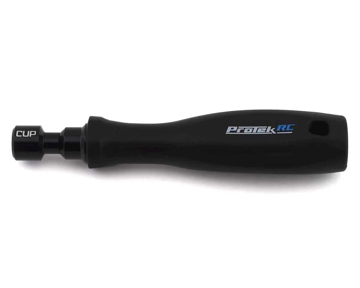 The ProTek RC "TruTorque" Aluminum 1/10 Scale Ballcup Wrench will dramatically reduce the time spent building turnbuckles - and will save you some wear and tear on your wrists! This driver simplifies the process by allowing you to build precise turnbuckles easier. This ball cup driver fits ball cups found on most Associated, TLR, Kyosho, Tekno, Yokomo and XRAY 1/10th scale Off-Road vehicles. The ergonomically designed molded composite handle is hollow and tapered to create a lightweight, comfortable grip that is easy to use by hands of any size, while the precision machined tool head will provide a lifetime of use.