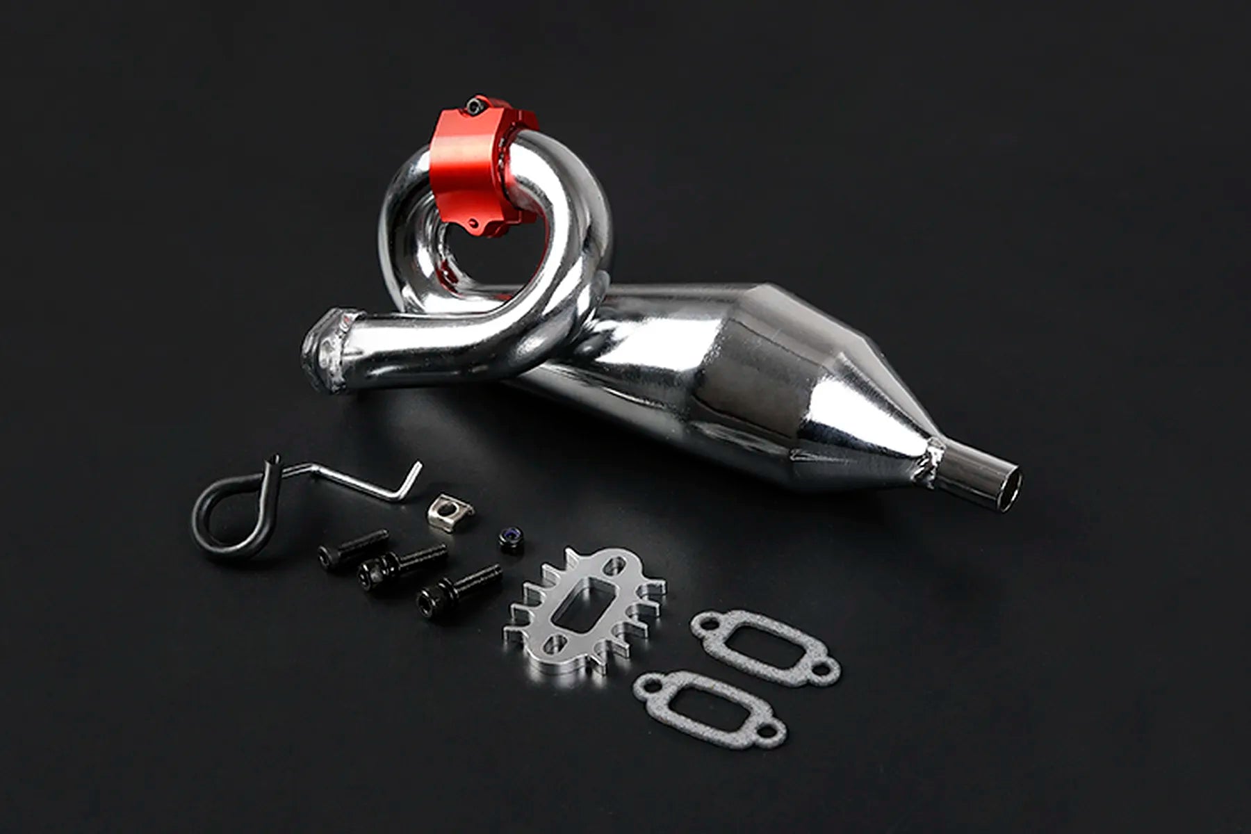 Rovan Chrome Silenced Exhaust w/ Red Metal Mounted Clamp #855621