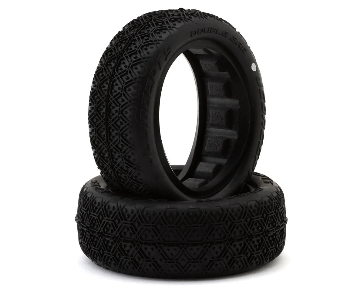 Introducing the Double Bar 2.2" Off-Road Buggy Front Tires by JConcepts. Designed specifically for high-performance RC racing, these tires are engineered to tackle conditioned track surfaces and heavy slick groove conditions with ease. Their innovative dual tread design offers enhanced grip and stability during aggressive cornering and high-speed maneuvers. Built for durability and precision, these tires are the perfect addition to any serious Buggy setup.