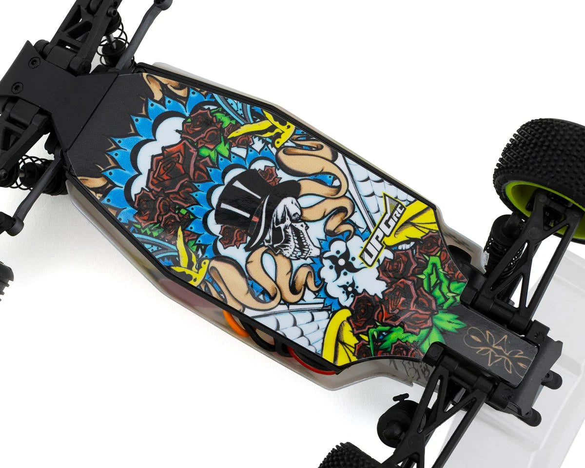 Introducing the UpGrade RC Chassis Protector for the Losi® Micro-B Buggy. Crafted from high-strength laminate with a strong adhesive vinyl backing, this sheet is precision-cut to fit the exact dimensions of your model. They offer a sleek, professional appearance while safeguarding your chassis from wear and damage. Chassis protector sheets are highly recommended for both used and out-of-box chassis to resist scratches and scrapes while prolonging the life of the chassis. For best results, always replace the sheet when noticeable wear occurs. In addition to protecting the chassis, protective sheets provide a slick and smooth chassis surface which helps reduce friction when contacting the race surface. If you happen to land hard and bottom out, your vehicle should have an easier time sliding through it and maintaining momentum.